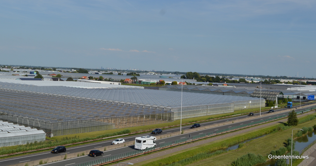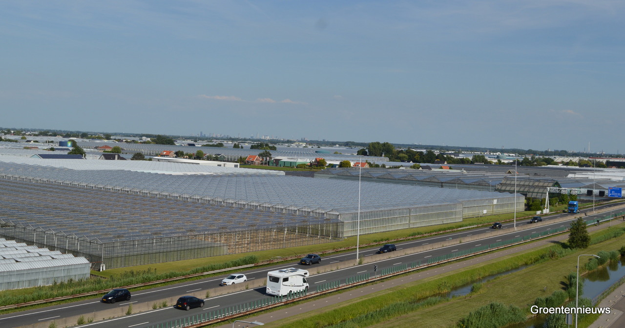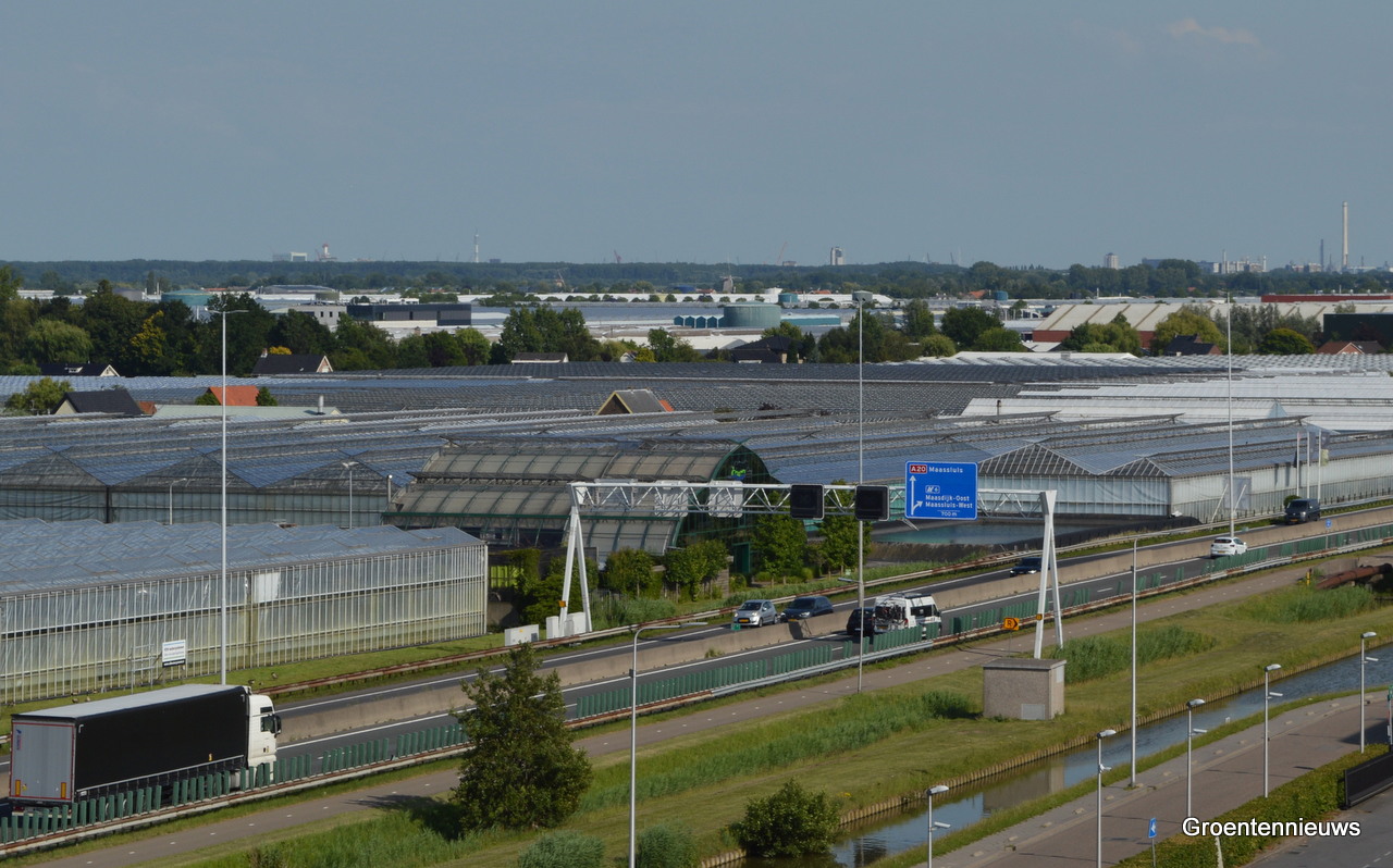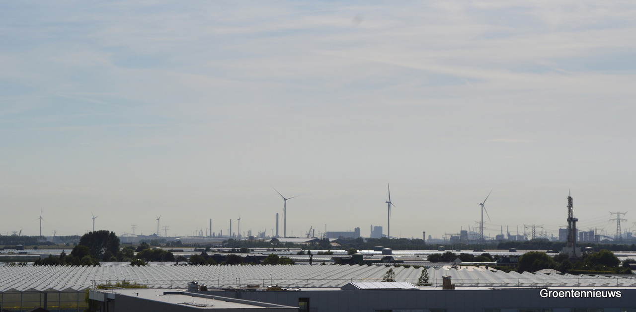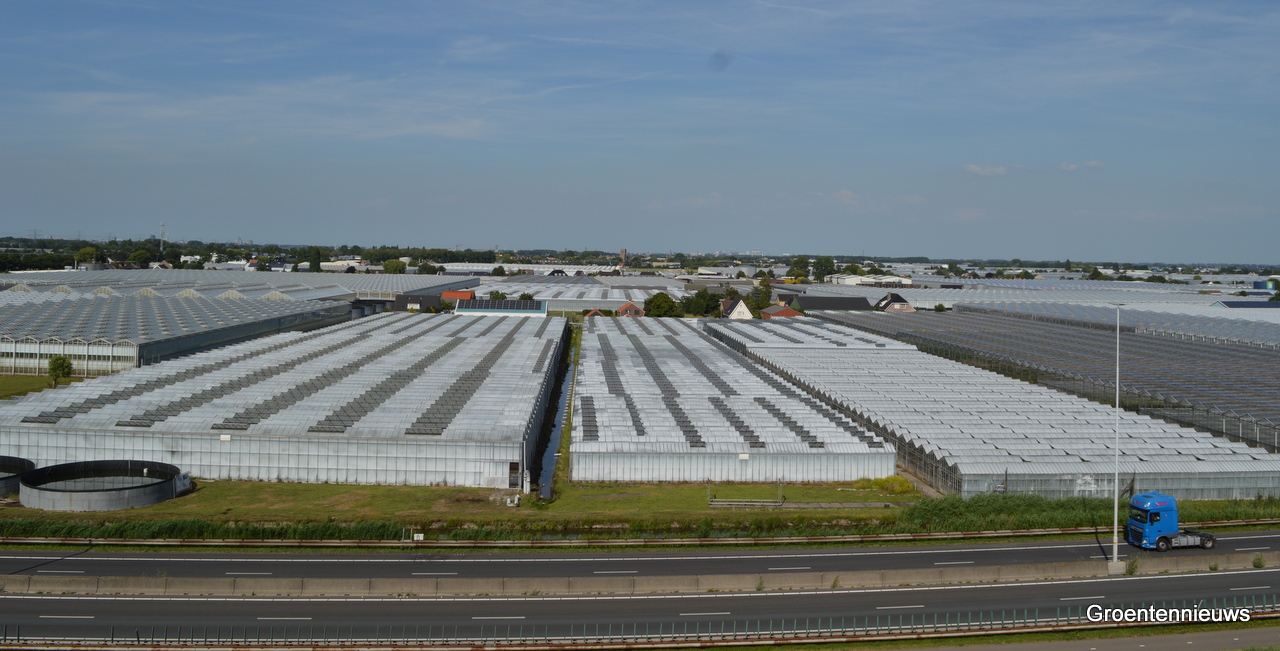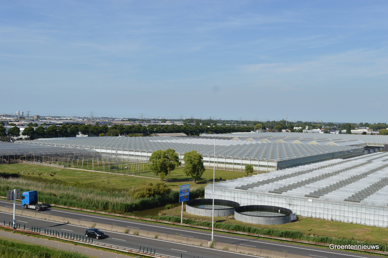 Een blik richting het Noorden vanaf het parkeerdek bij Growers United