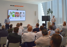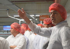Na de presentatie van Stefan was het tijd voor de rondleiding. Hier geeft Jan Opschoor uitleg aan de groep die hij mee naar binnen nam in het distributiecentrum van Growers United.