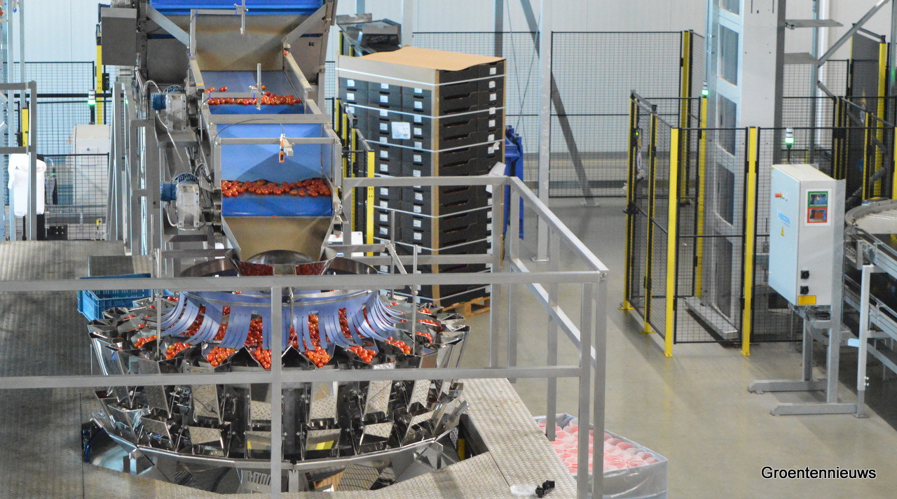 Tijdens een korte rondleiding was onder meer een multihead weeginstallatie vol tomaten te zien.