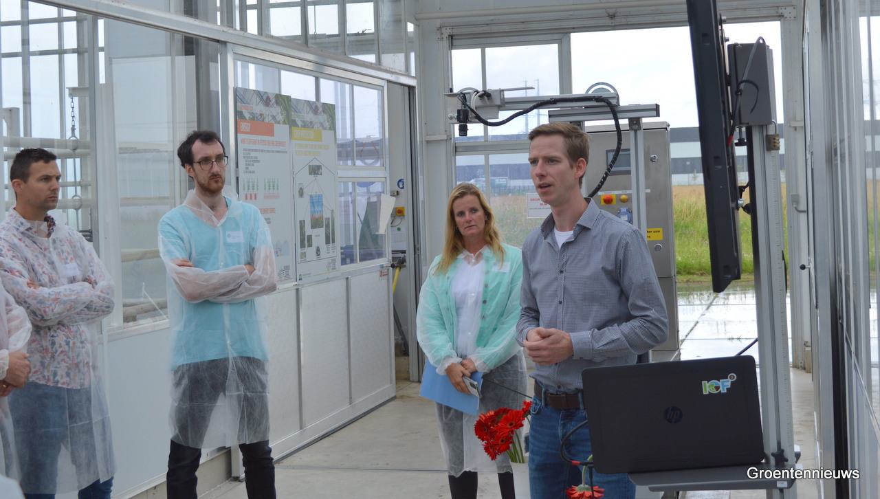 Het middagprogramma bij de afsluiting van de derde editie van de Autonomous Greenhouse Challenge begon met een rondleiding langs diverse WUR-projecten op de locatie aan de Violierenweg in Bleiswijk.