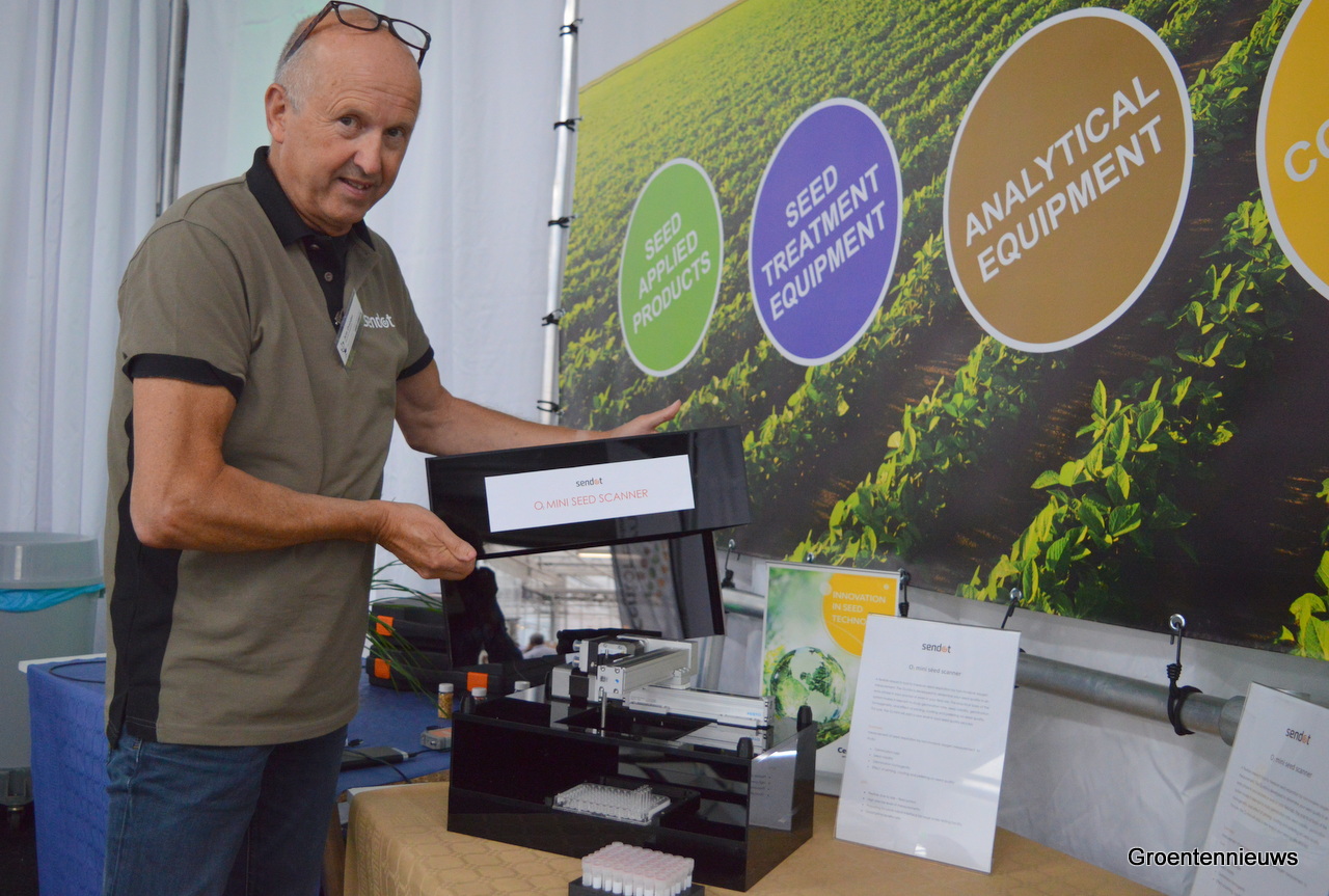 Sendot nam naar Seed meets Technology een nieuwe zaadscanner mee, die kleiner is dan de gangbare systemen in de markt en daarmee flexibeler aldus Arie. Hij kan het weten, want hij was nog betrokken bij de ontwikkeling van vergelijkbare systemen in het verleden.