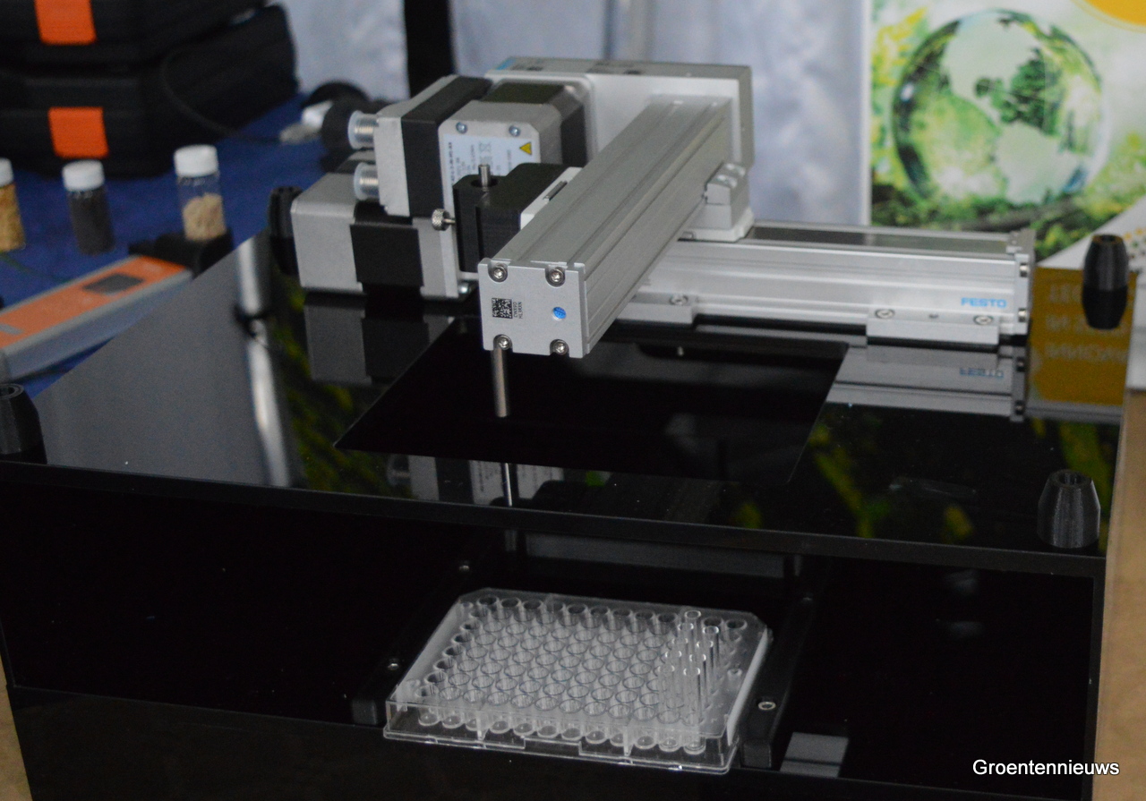 Anne Balkema van Balkema Technologies bracht een machine mee die het duizendkorrelgewicht van zaden bepaalt én een machine, en daarmee onderscheidt het bedrijf zich volgens Anne, die sampling automatiseert. “Zo’n machine heb ik nog niet elders gezien.”