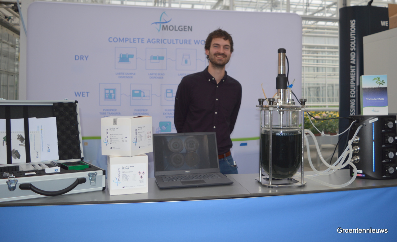 Nadat Eric van de Zilver van MolGen het over bierbrouwen had, waren we direct geboeid. Dat het uiteindelijk om bierbrouwen met trichodermaschimmels ging, maakte het verhaal minder smakelijk, maar niet minder interessant. MolGen zet in op het coaten van zaden met de schimmel, waarbij de schimmel precies op de juiste plek (bij de wortel) wordt gebracht, zodat het gewas er zijn voordeel mee kan doen.