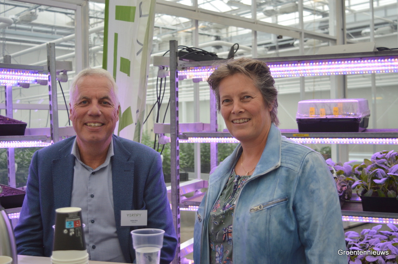 Johan Kos van gastheer Vertify en Dimmie Vervorst-Haakman van Syngenta. Johan liet weten het leuk te vinden dat de beurs ook een soort reünie is voor ‘oude strijders uit het vak’.