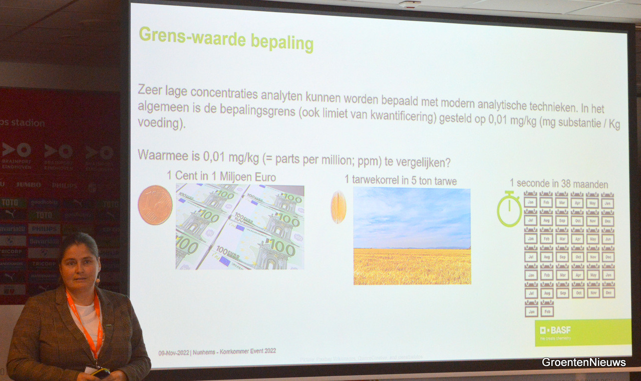 Monika Richter van de chemietak van BASF sprak de ongeveer honderd aanwezigen, waaronder heel veel komkommertelers, bij over Maximale Residu Limieten.