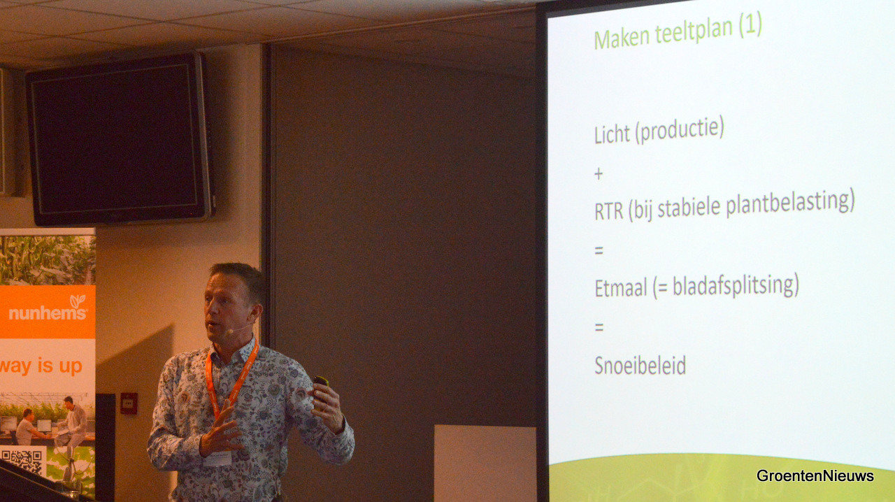 Mark van der Werf rondde de presentatie van Marcel af met uitleg over datagedreven telen volgens de principes van Plant Empowerment. Het maken van een plan voor het hele teeltjaar en sturen op licht zijn belangrijk volgens de consultant bij een datagedreven teelt.