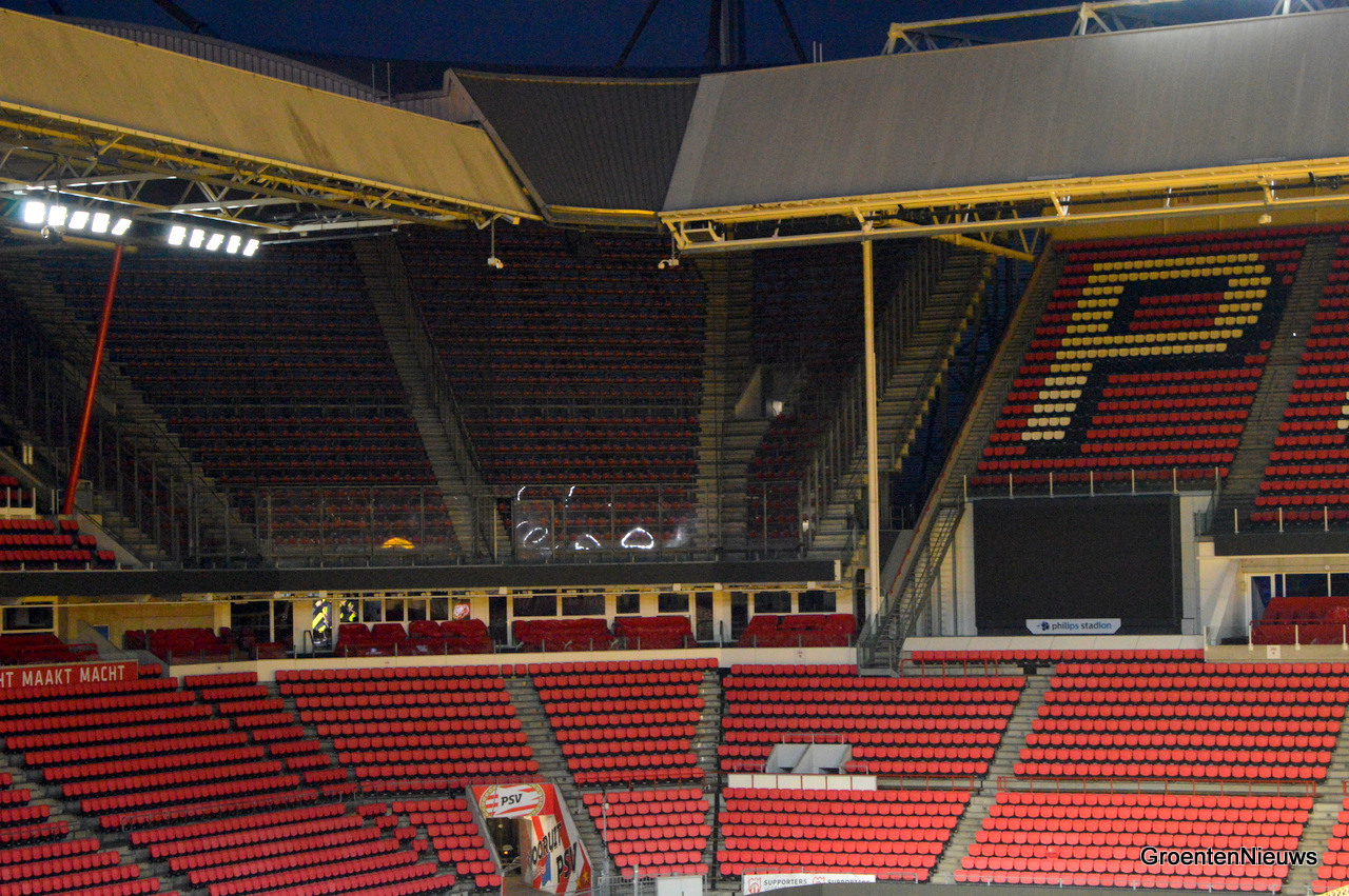 In de andere hoek van het stadion zitten de lamellen dicht.