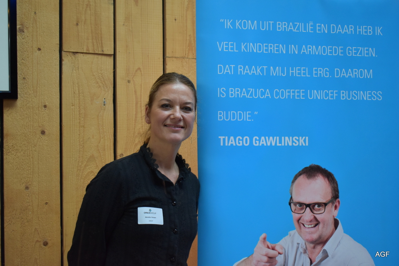 Marielle Ponsen van UNICEF. Rondom de feestelijkheden heeft had de OPACK Group gekozen voor ht project Plastic Bricks van UNICEF. UNICEF en partners werken aan het prject )Plastic Bricks in Ivoorkust waarmee plastic wordt gerecycled tot bouwstenen voor klaslokalen.