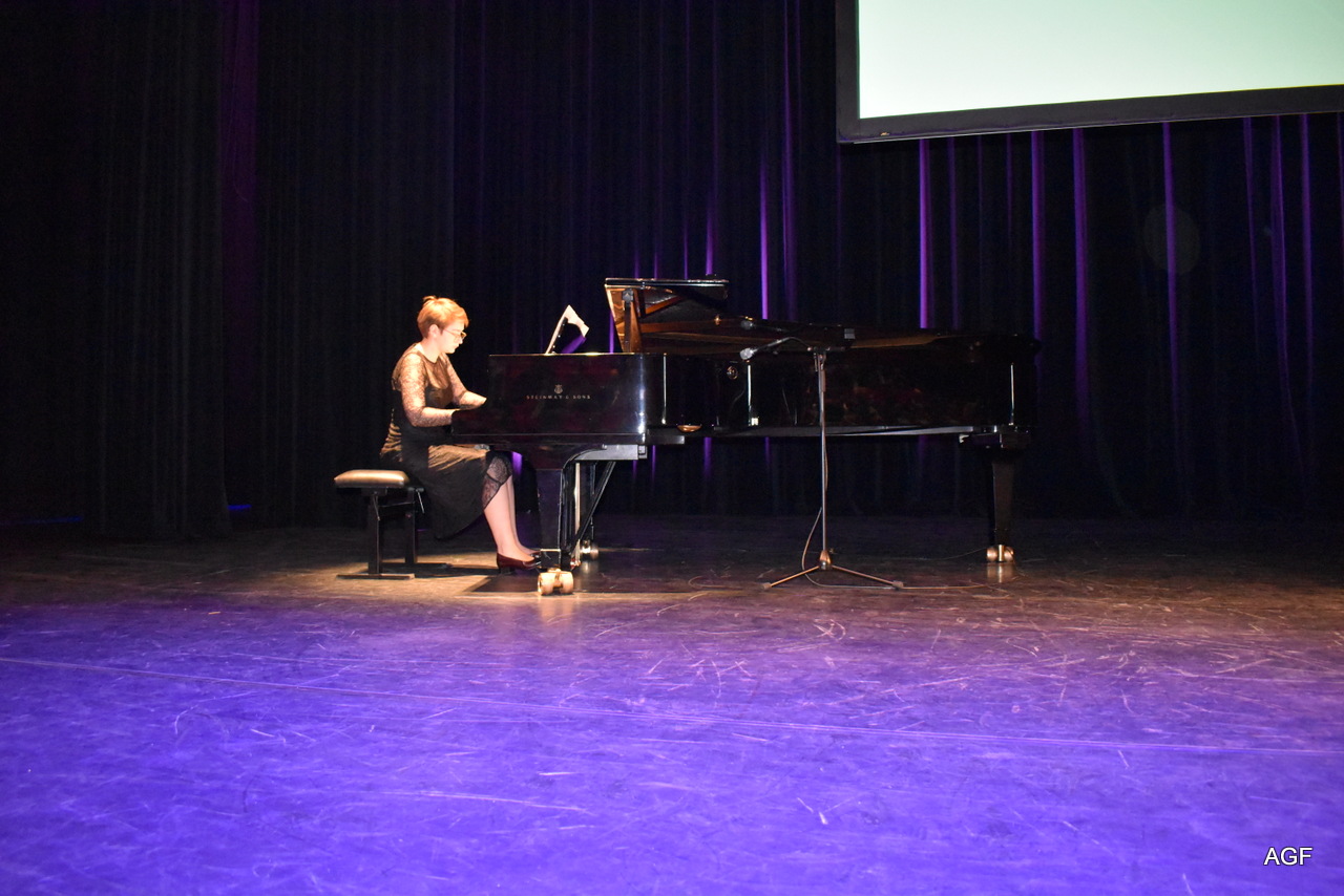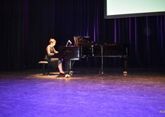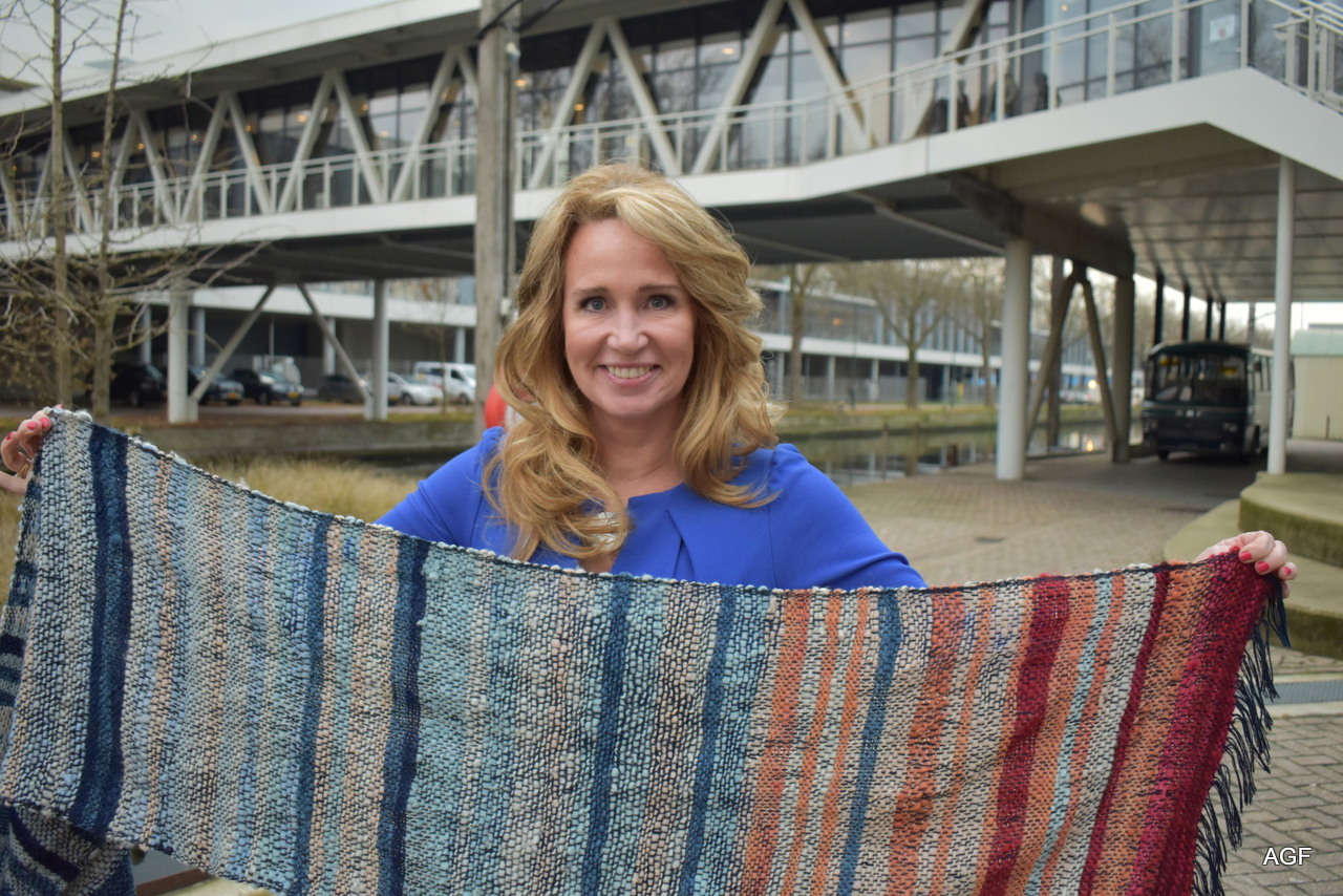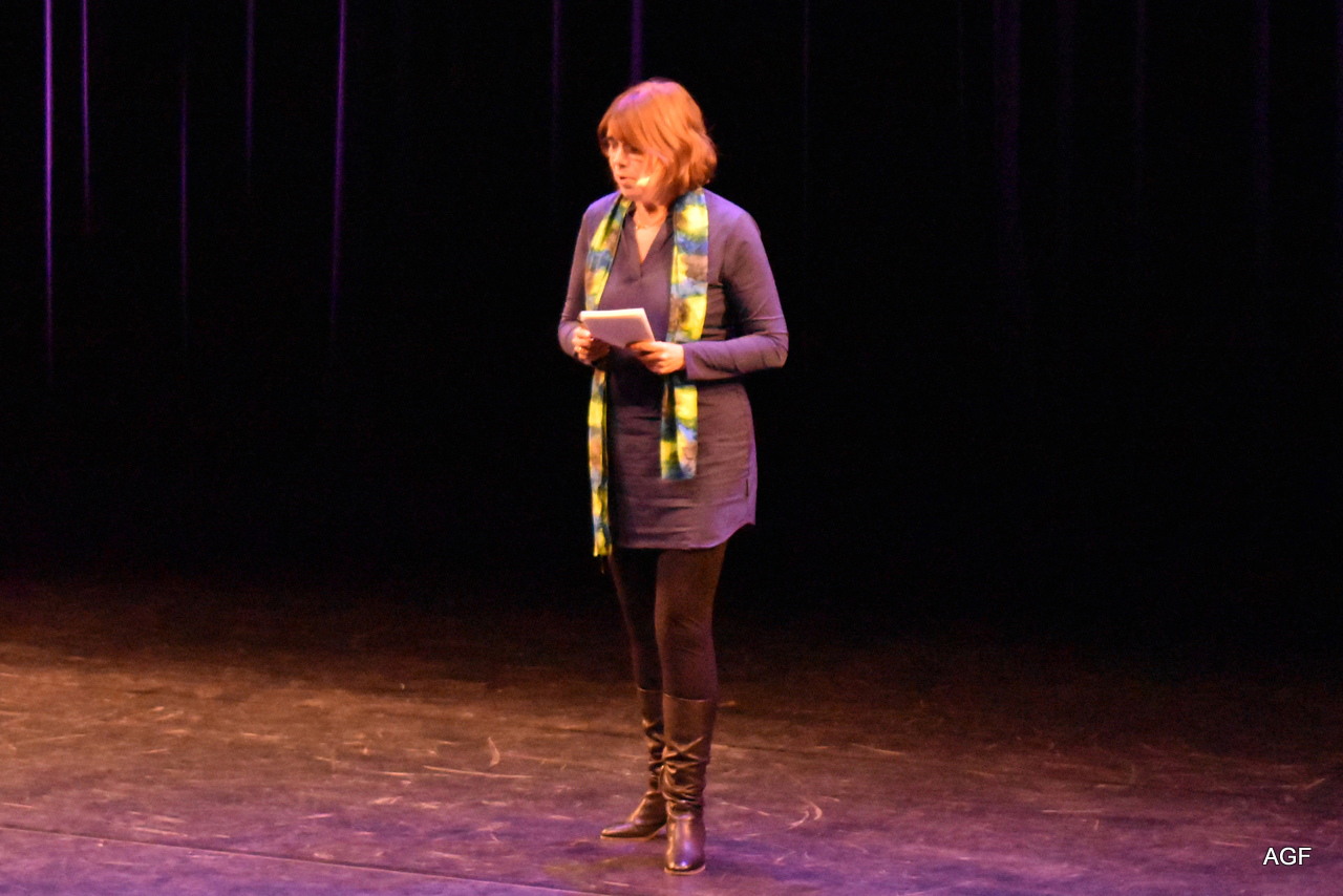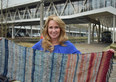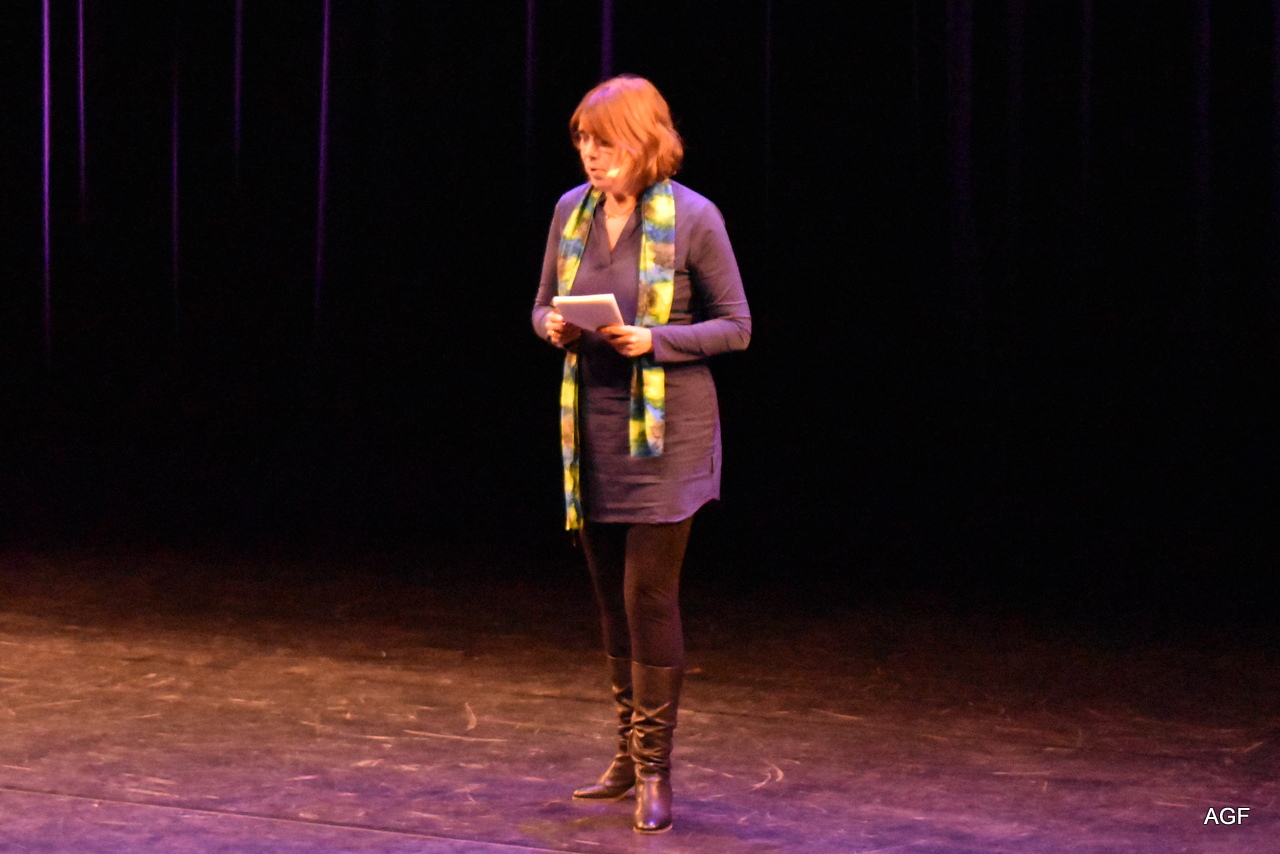 Helga van Leur, sprak over het thema vandaag heb je morgen in handen. Haar sjaal laat zien hoe snel de aarde opwarmt.