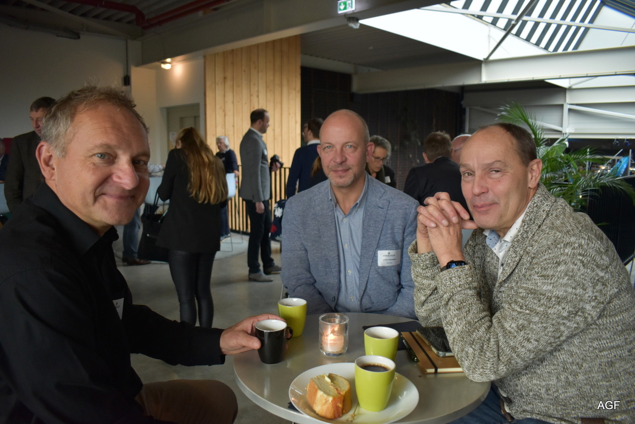 Henri van Hemert en Piet van den Oord van Oerlemans Plastics. In het midden Eddy Stuiver van Stemher.