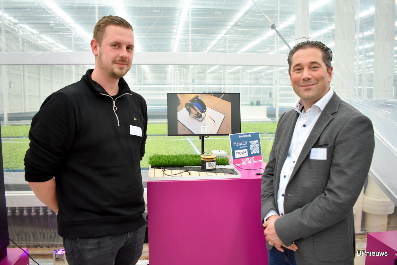 Koen van den Berg en Jaimy Bosch van Texplor stonden er met een kleine presentatie van hun product om lekkages te detecteren en repareren om milieubelasting te voorkomen.