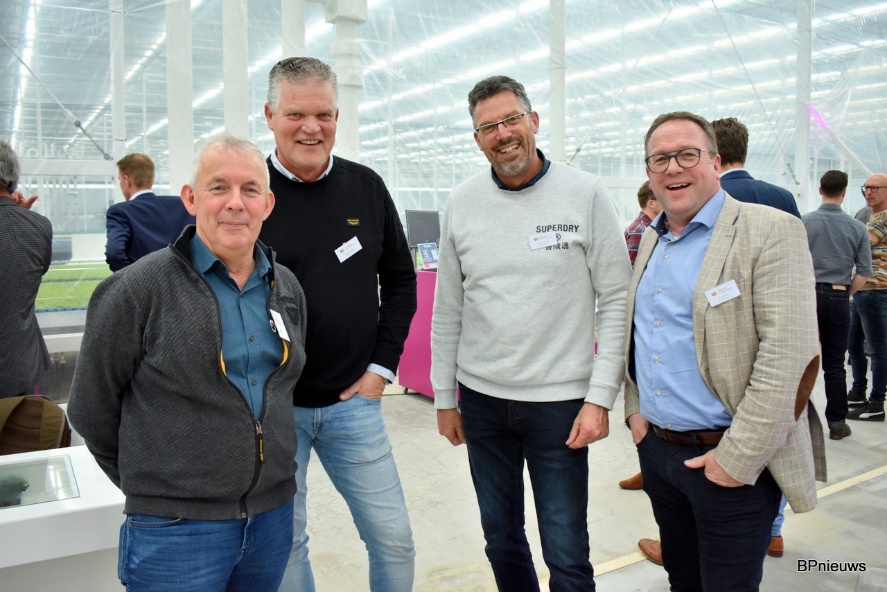 Marc Rost van Royal Hilverda Group, Wp van den Berg van Gerbera United, Jan van der Ploeg van Royal FloraHolland en Dick Kooij van Gerbera United.