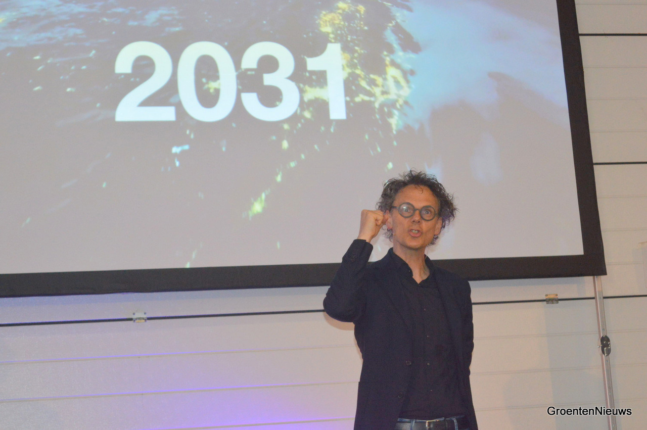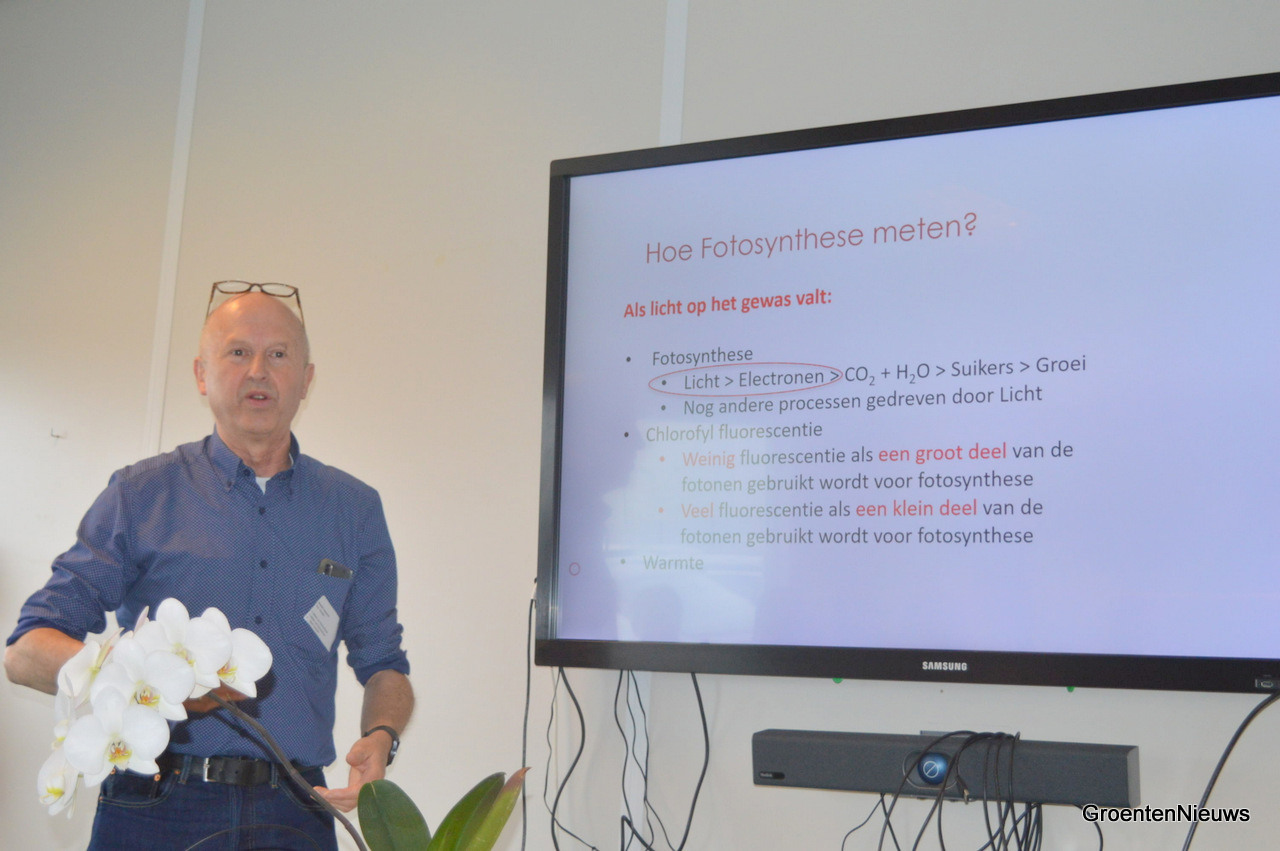 Ben van der Burg voelt zich, als tuinderszoon, nog altijd verbonden met de glastuinbouw. Hij gaf een energieke presentatie voorafgaand aan de workshops.