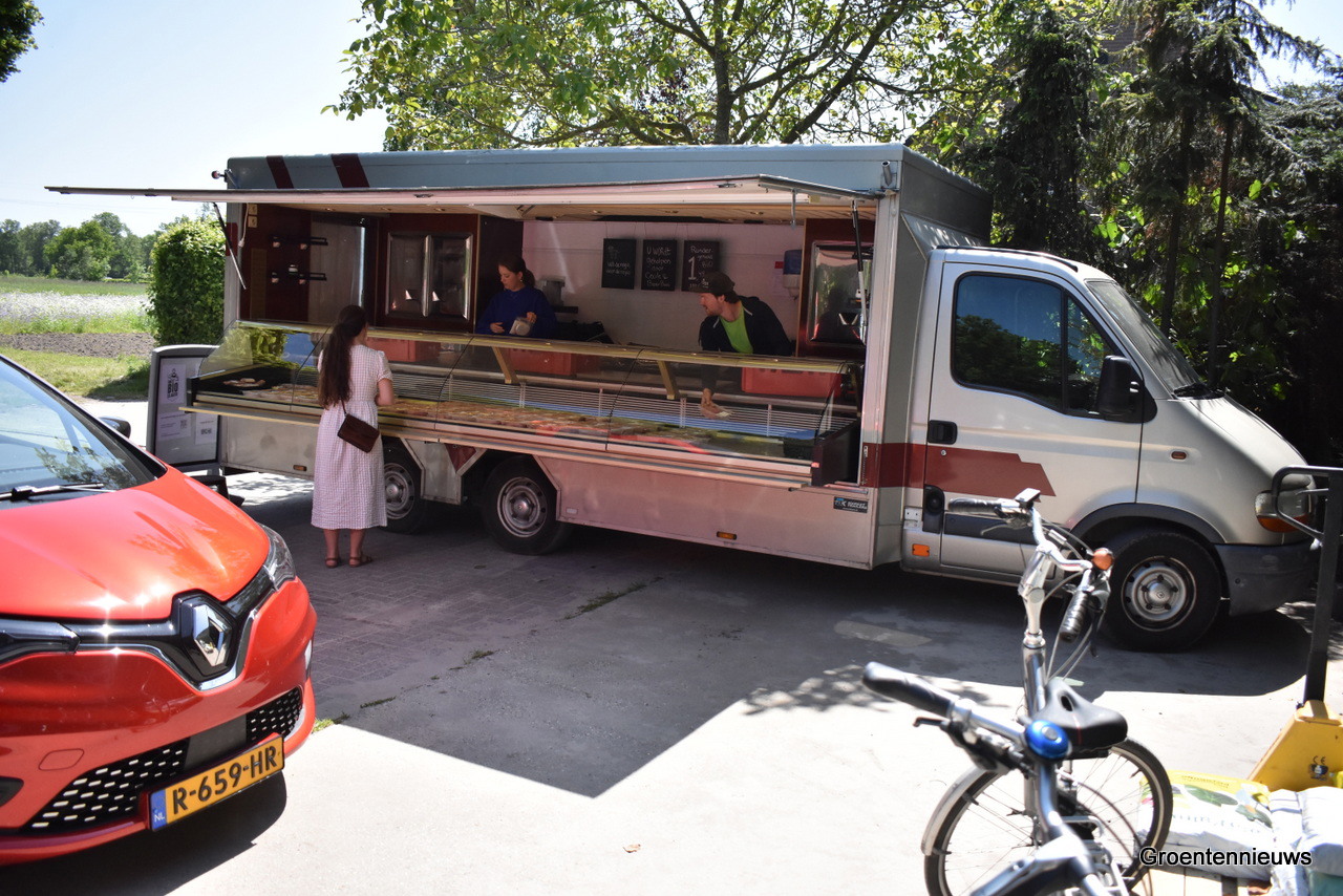 Biologische vleesverkoper Bas staat met zijn verkoopkar op het terrein van de Kromme Lepel