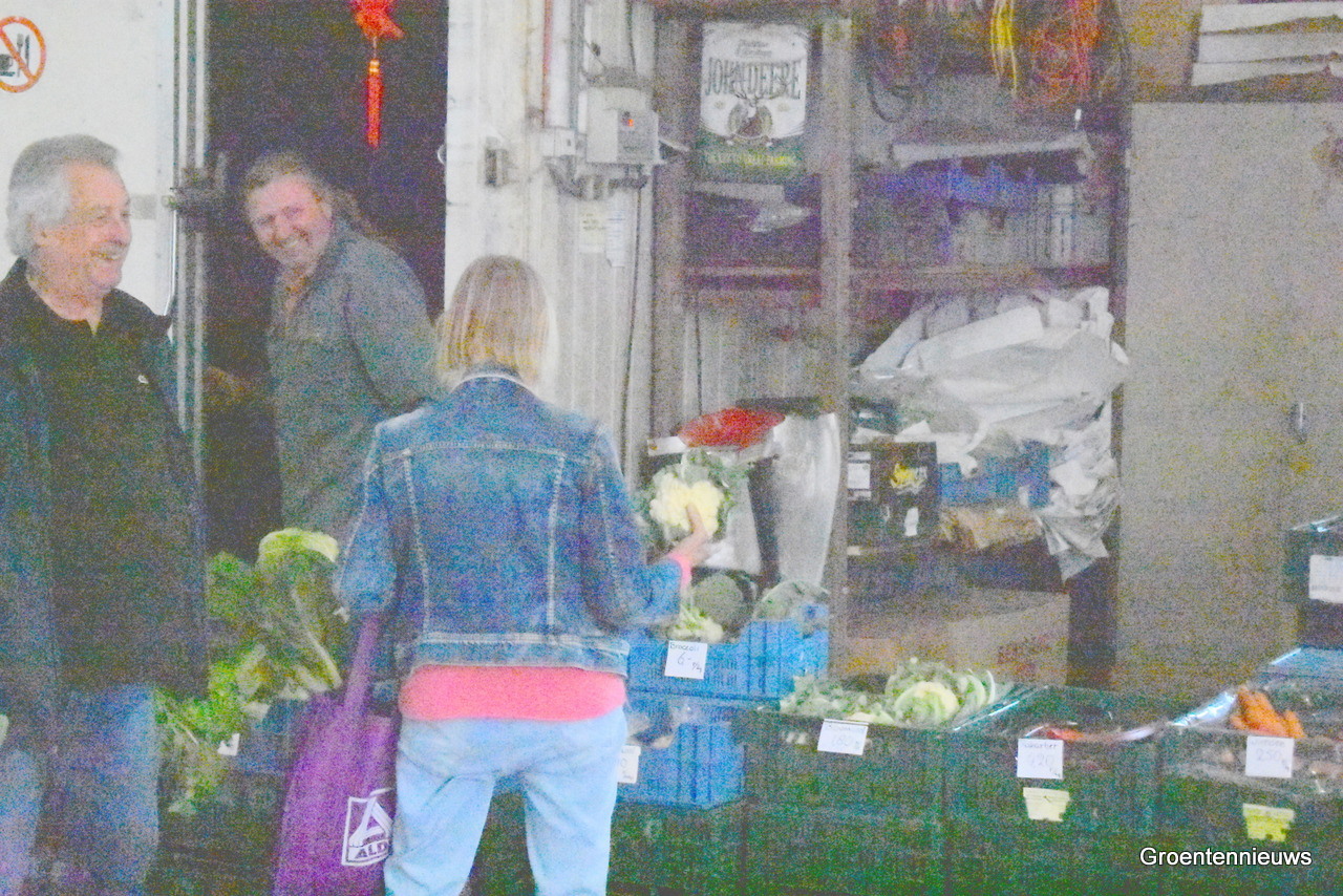 Peet helpt de klanten om de juiste groentes te kiezen