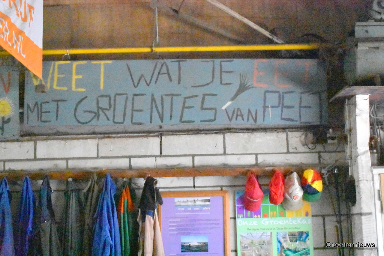 Peet zet de groenten klaar voordat de bezoekers komen en doet dat met plezier