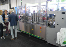 Een van de nieuwkomers op de beurs: John Laurijsen van Laurijsen WeegAutomaten. Hij bracht zijn kleinste machine mee. Als het moet kan het bedrijven machines leveren die tot 3 ton wegen. Dan is deze machine van 30 kilo van het eigen merk New Weight toch makkelijker om naar Zwaagdijk te brengen. John was positief verrast door de hoeveelheid internationaal publiek op de beurs.