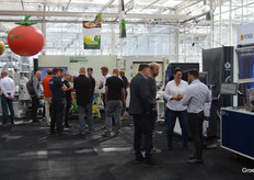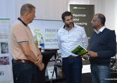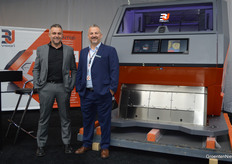 Massimiliano Bernabei en Andrea Uzzo van het Italiaanse 3U Vision. Vorig jaar leverde hun beursdeelname de verkoop van hun machine op aan het Nederlandse V&F Seeds. https://www.groentennieuws.nl/article/9554603/nieuwe-machine-bij-v-f-seeds-die-zaden-op-kleur-kan-sorteren/