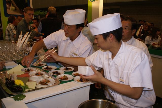 De 7 Purple Pride telers hebben gisteren op een bijzondere manier de aandacht gekregen. Zij hadden de koks van het Okura hotel uitgenodigd gerechten te bereiden met hun producten.