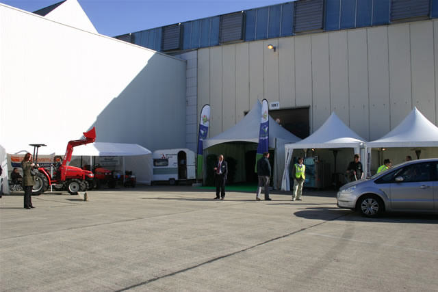 Met busjes werd iedereen van het parkeerterrein naar de hal met daarin de beurs gebracht
