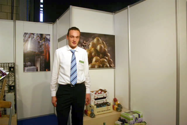 Een vertegenwoordiger van Hollandia in de stand bij Rijk Zwaan