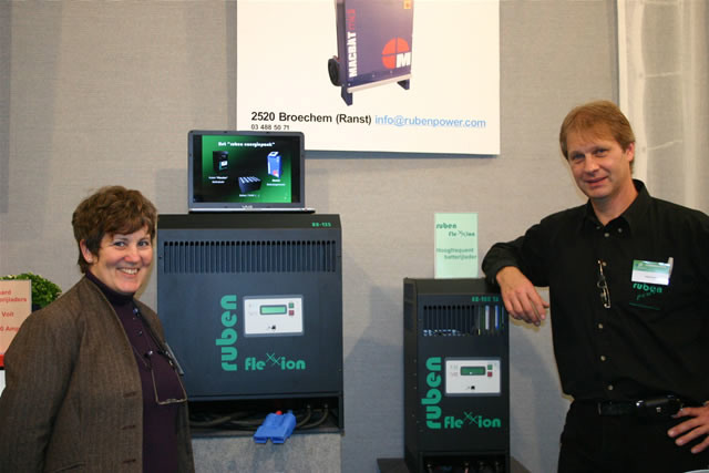 Ruben Power presenteerde een apparaat om zelf accu's mee op te kunnen laden en een aanzienlijke kostenbesparing te realiseren. Rechts staat Mark Lens
