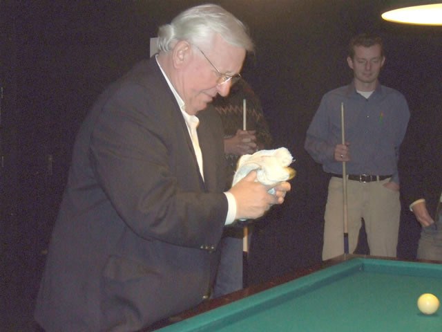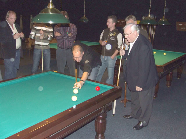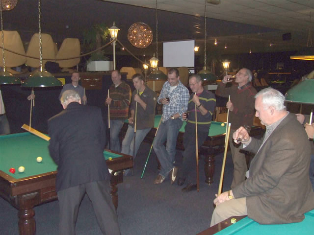 Raymond Ceulemans verzorgde een biljartclinic. De Belg op leeftijd werd maar liefst 61 keer Belgisch kampioen en liet nog een sterk biljartstaaltje zien.