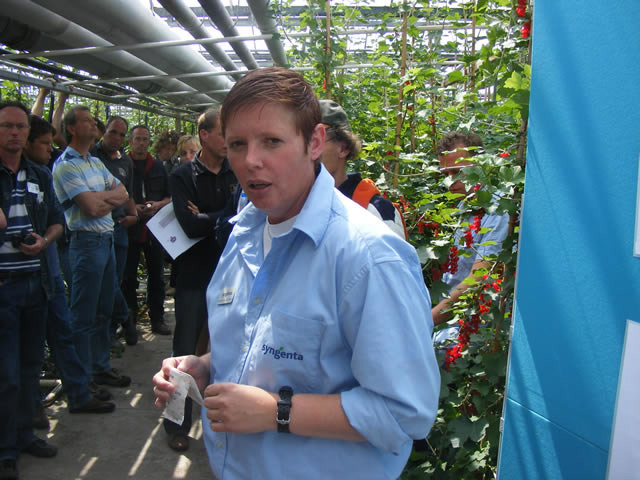 Caroline van den Hoek Van Syngenta geeft uitleg over biologische bestrijding van spint.