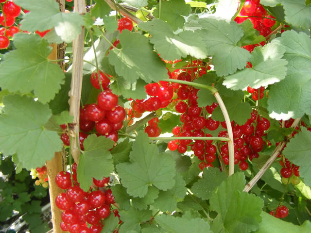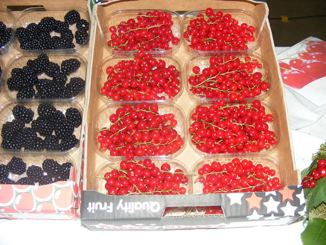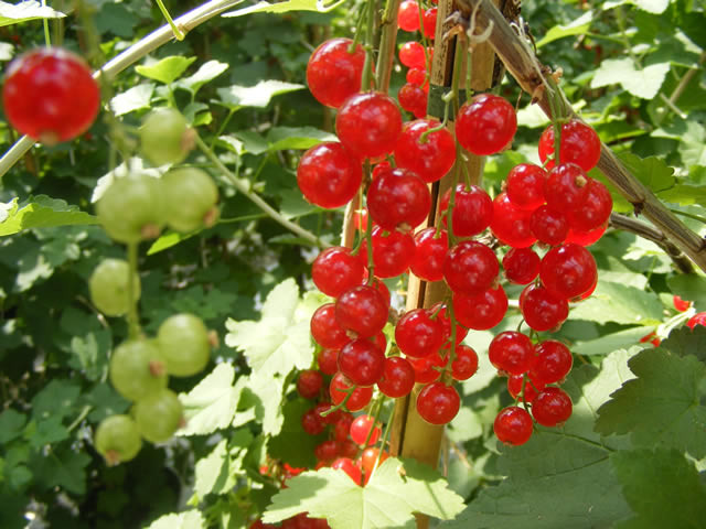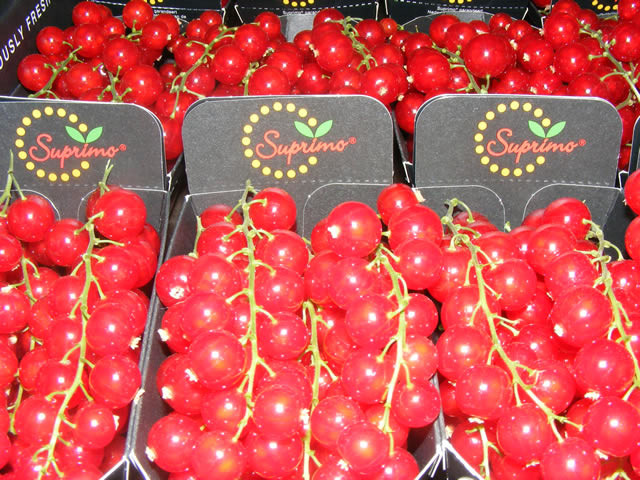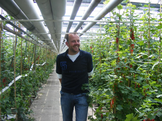 Er worden al rode bessen geplukt in de kas.