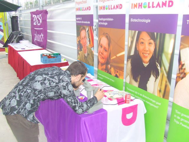 Sijmen Strikwerde van InHolland. Naast informatie over de studies van InHolland, probeerde Sijmen ook afstudeeropdrachten van telers binnen te krijgen