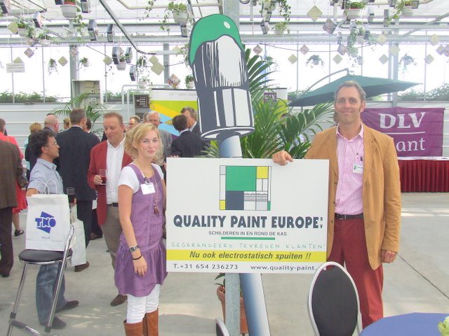 Rianne van Kester en Arno Duijndam presenteren trots de kwast in het nieuwe logo van Quality Paint Europe.