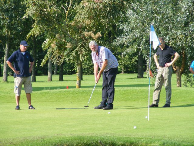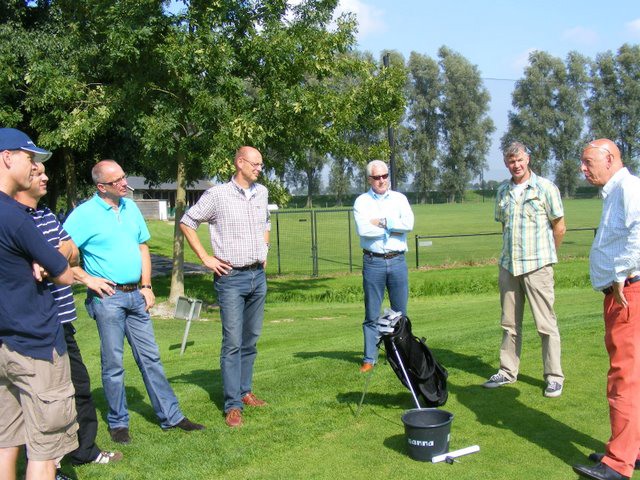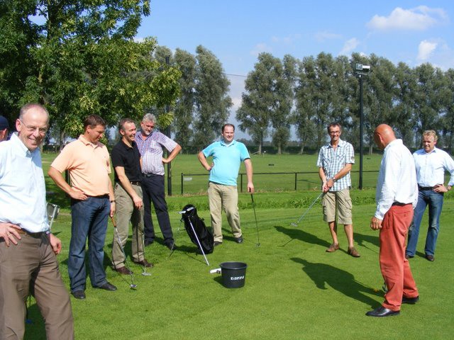 Teacher Gerrit legt de beginselen van het putten uit aan de deelnemers van de clinic.