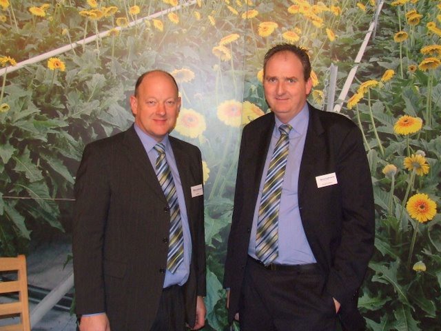 Peter van Heijningen van Raymax en Andre van der Burg van Hortilux Schreder maakten het samen gezellig