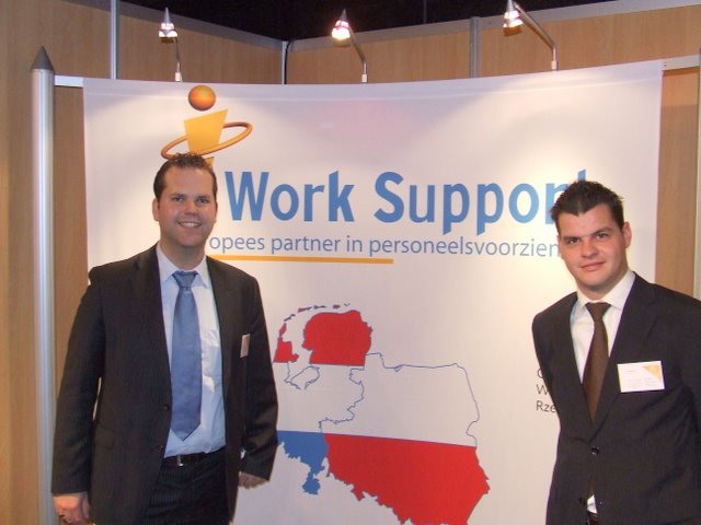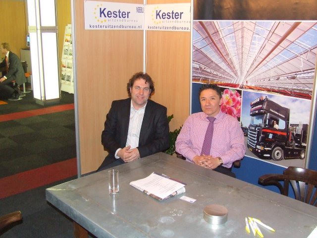 Oud-teler Jan Kester van Uitzendbureau Kester en Jeroen de Jonge van Peter Dekker Installaties bemanden gezamenlijk een stand