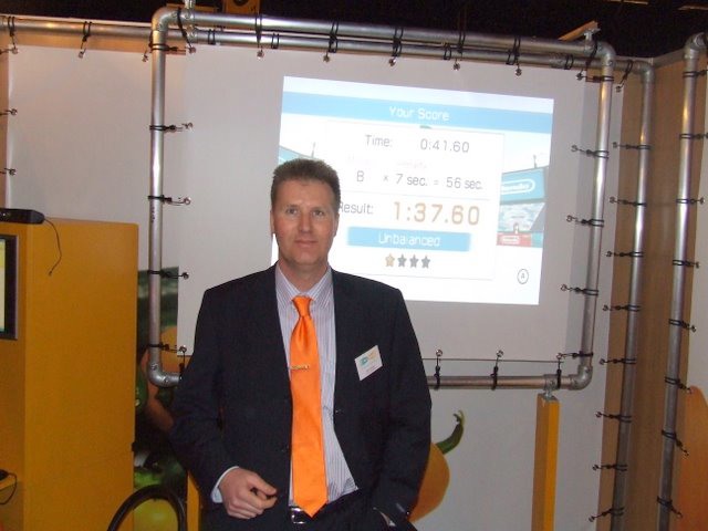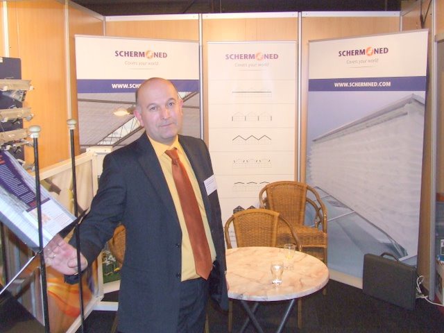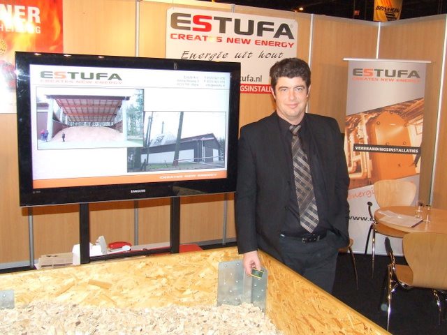 Erwin van Weeghel van Estufa kijkt op de beurs of glastuinders interesse hebben om energie uit hout te winnen