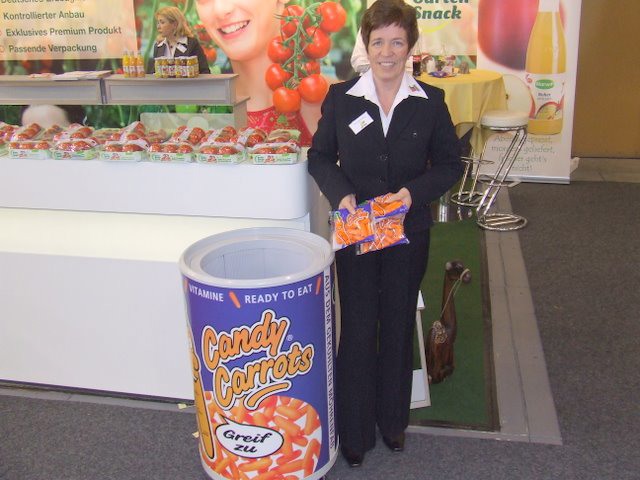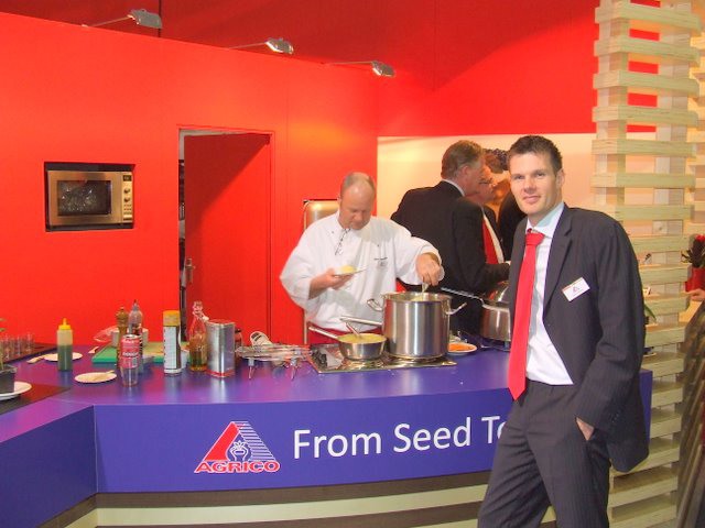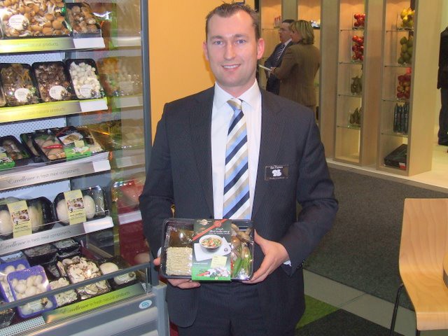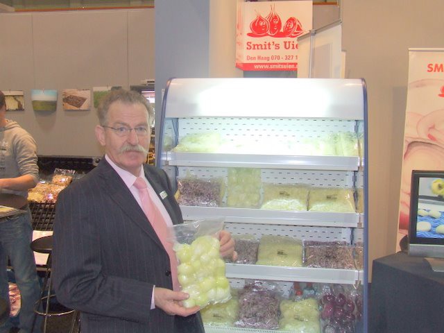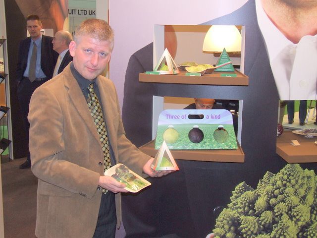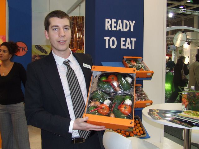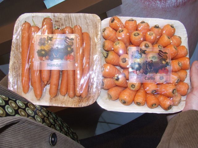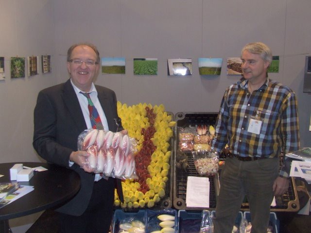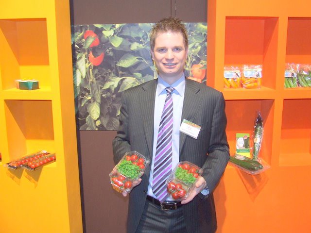 Perry Kuijlboer van Bejo Zaden. Bejo had als thema 'Working with Nature' en had tal van bijzondere producten meegenomen als wortel- en koolrabisticks, knolselderij in schijven, chips van wortelen en rode bieten