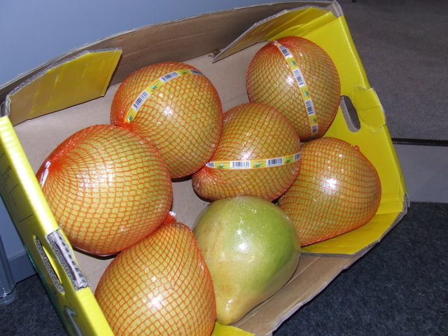 Chinese pomelo's verpakt onder het eigen merk Dinosaurs bij Denimpex
