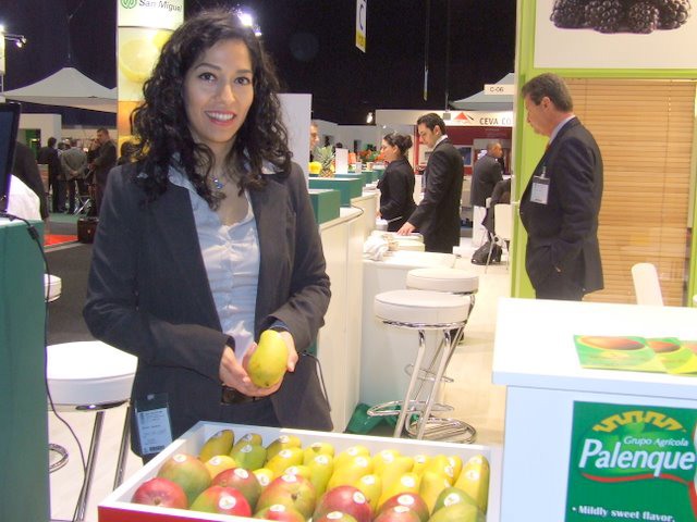 Sabine Hain Lozano toont een nieuwe mango-variëteit uit het assortiment van Mexbest.