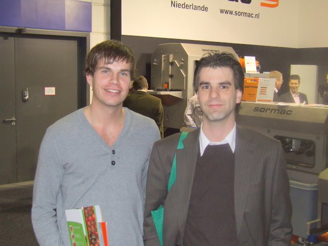 Tomatentelers Pieter van Dijk en Robin Grootscholten doen ook een rondje over de beurs