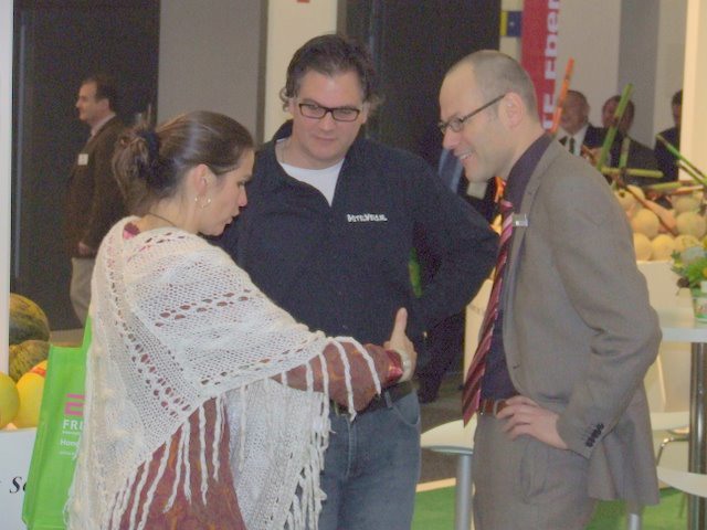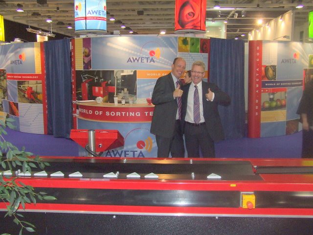 Pieter en Dirian Boekhout gaan langs bij de vele bekenden uit de agf-wereld. De stand van Freshplaza.com is druk bezocht en de Holland Fresh Guide is aan iedereen uitgedeeld.