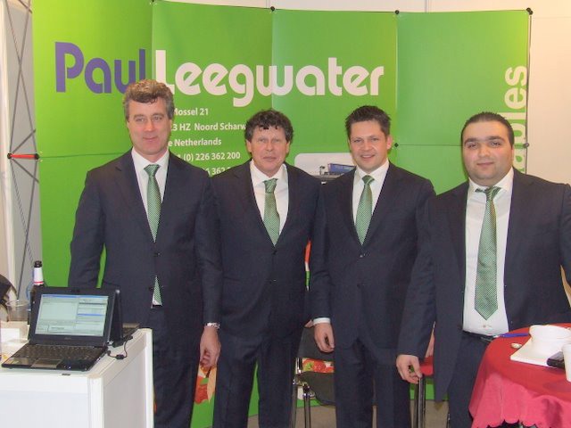 Paul Leegwater was voor het eerst met een stand in Berlijn. Van links naar rechts: Krijn Heijboer, Paul Leegwater, Bart Leegwater en Arthur Avakjan