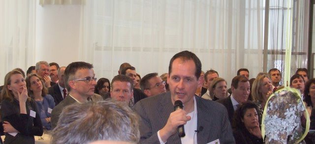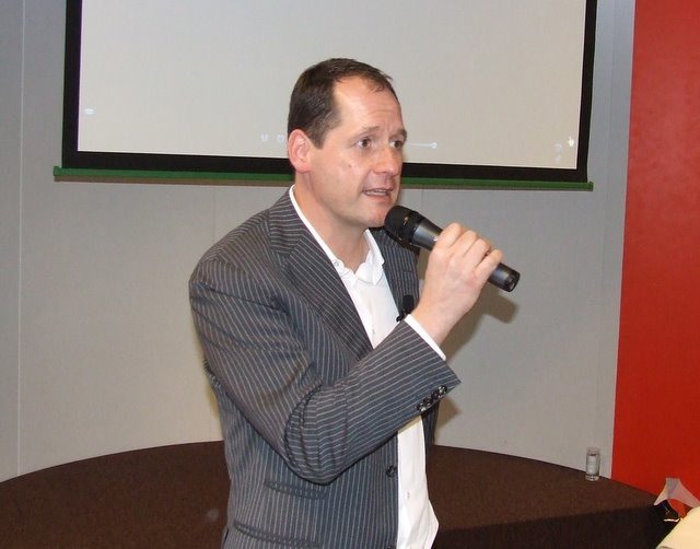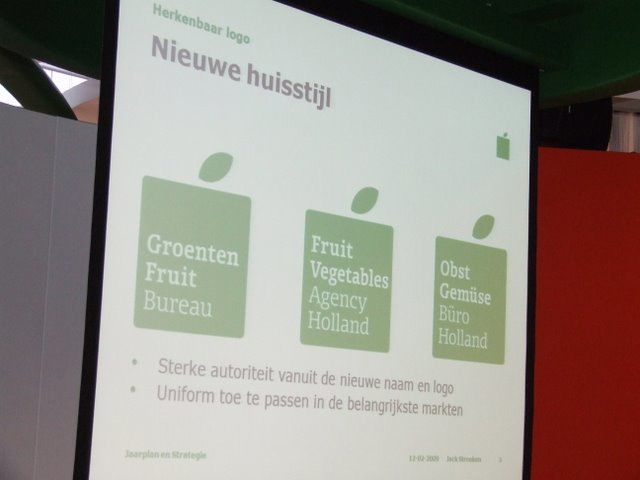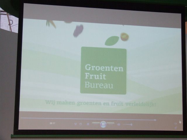 Creatief directeur Ad Berends prikkelde de aanwezigen met opvallende groentenfruit-promotiebeelden