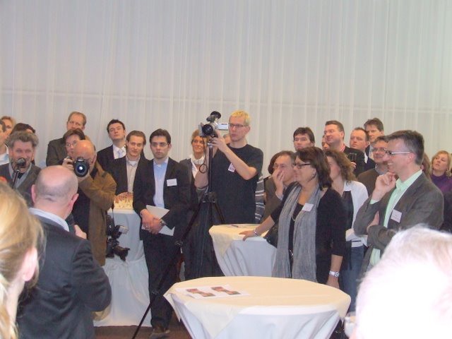 Oei. Het logo wordt gepresenteerd en dan komt'ie niet op het scherm! Jos van Mill wordt erbij gehaald.