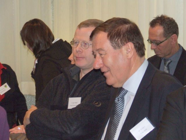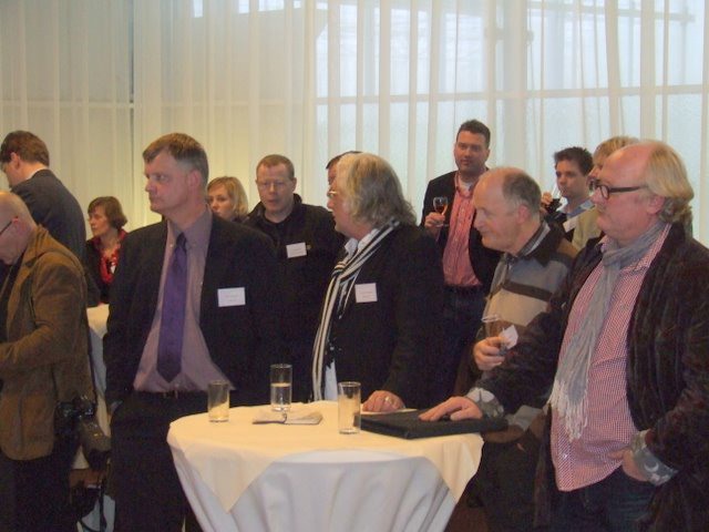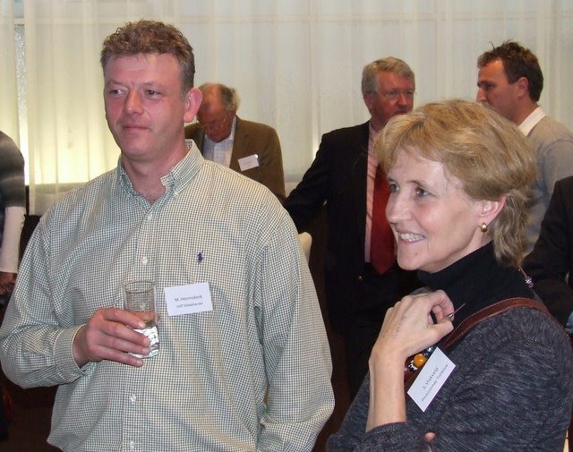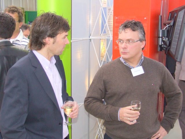 Ook René Baan van Bakker en Leenheer was van de partij. Hier in gesprek met Franky Koekebakker van Red Star Trading