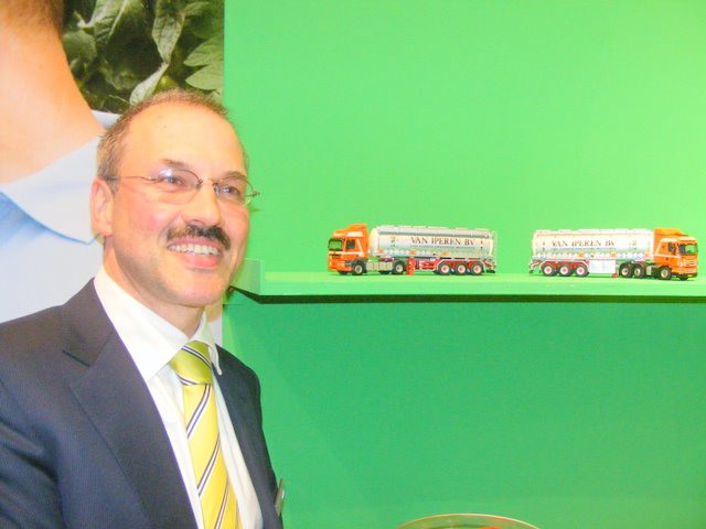 Het lijkt net of Denis Dullemans van Agrolux rechtstreeks uit de banner op komt rijzen...