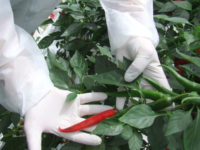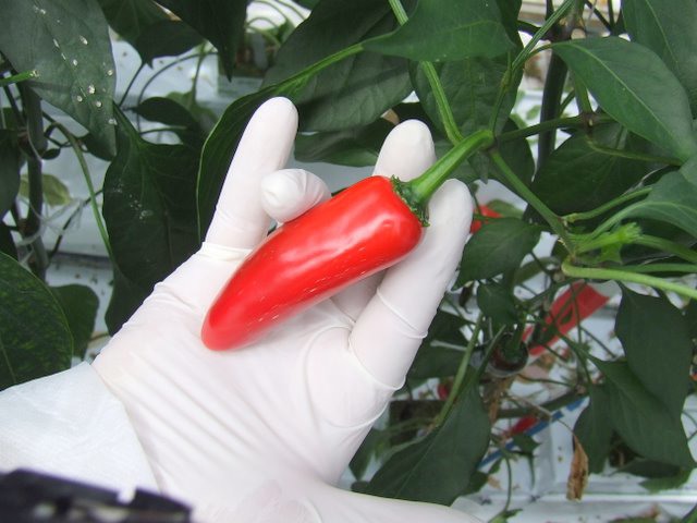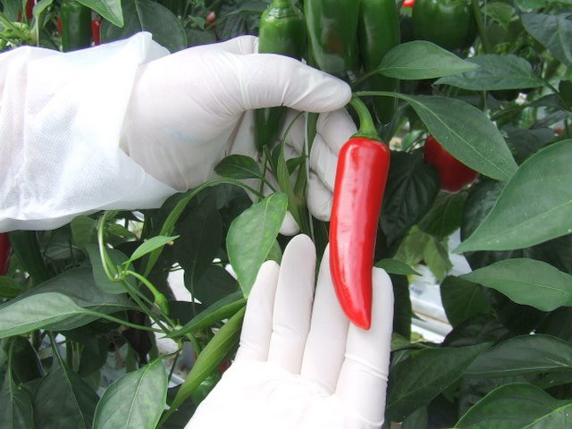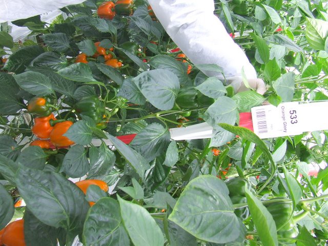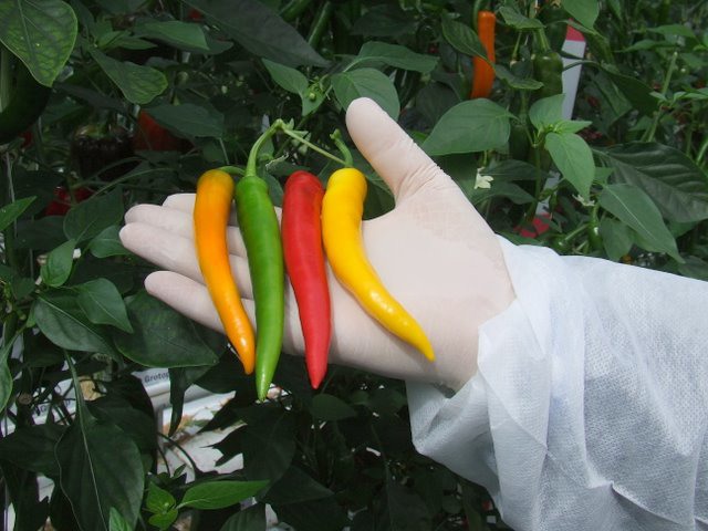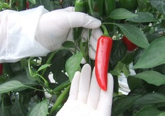 Mooie kleurenvariatie. In plaats van op brixwaarde (zoetheid) worden de pepers getest op scofield (heetheid)