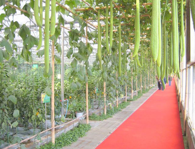 Chinese bladgroenten geteeld op goten