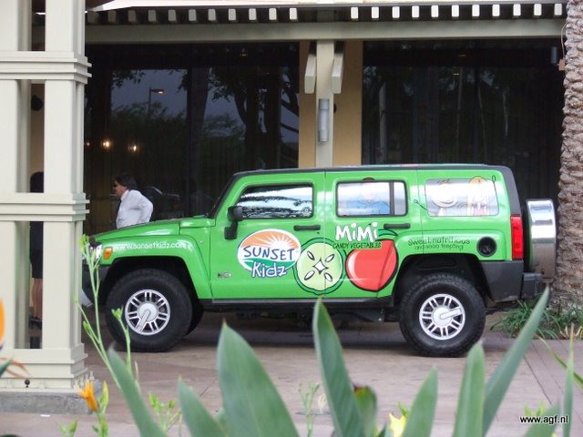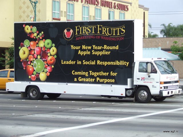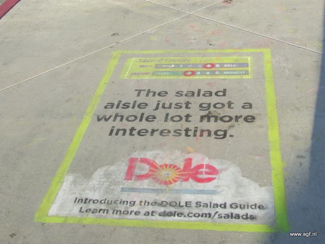 Dole had op het pad naar de beurs allerlei reclame beschilderingen aangebracht