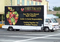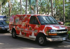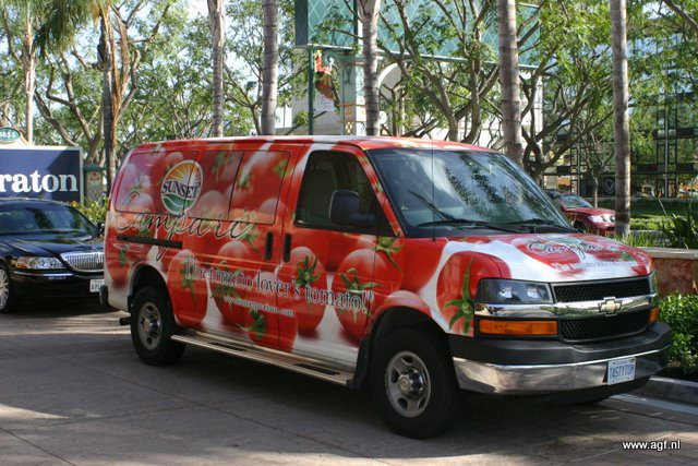 Rond de beurs rijden niet alleen vrachtauto's maar ook busjes met reclame rond