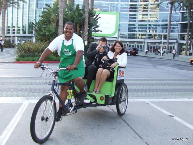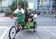 Een andere actie van Dole was je de laatste honderd meters met de fietstaxi naar de beurs brengen